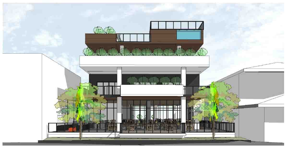 Wielding plans to demolish the existing Bay Motel, at 12 Bay Street, a new multi-level structure will encompass a pub-style hospitality venue on approximately 400sqm of internal area, and “as much outdoor seating area as the site can handle”. Upstairs will be four luxury half-floor apartments.
